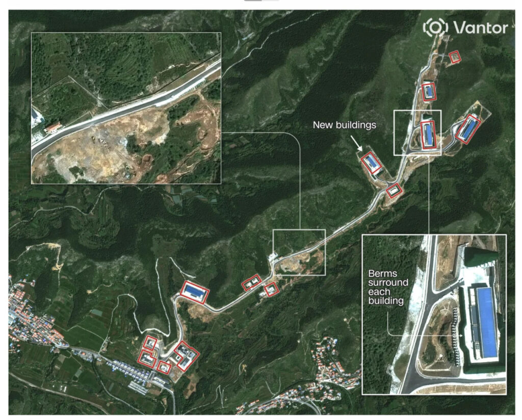 - Візуальні докази: На знімках зростаючих об’єктів з’явилися нові вежі, бункери та насипи, що свідчать про розробку зброї. У деяких випадках видно навіть частини ракет.