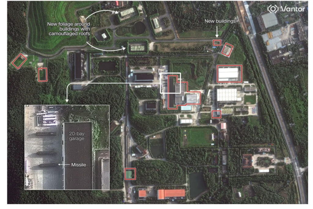 - Розширення об’єктів: Понад 60% зі 136 об’єктів, пов’язаних з виробництвом ракет або ракетними силами (РВСН) китайських збройних сил (НВАК), показали ознаки розширення на супутникових знімках.