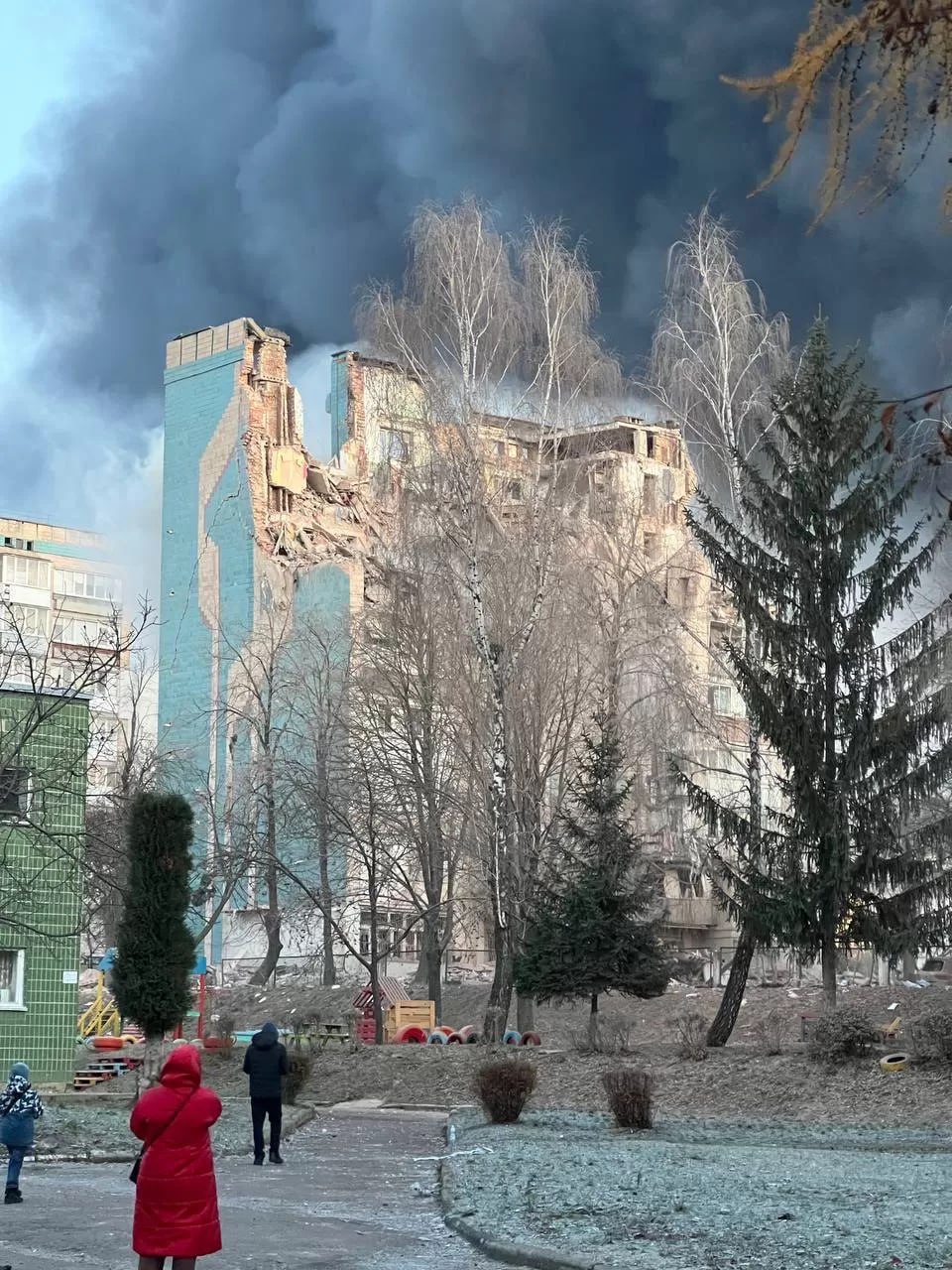 - Руйнування: Унаслідок ракетного удару зазнала значних пошкоджень багатоповерхівка. За попередніми даними, повністю знищено щонайменше три верхні поверхи житлового будинку.